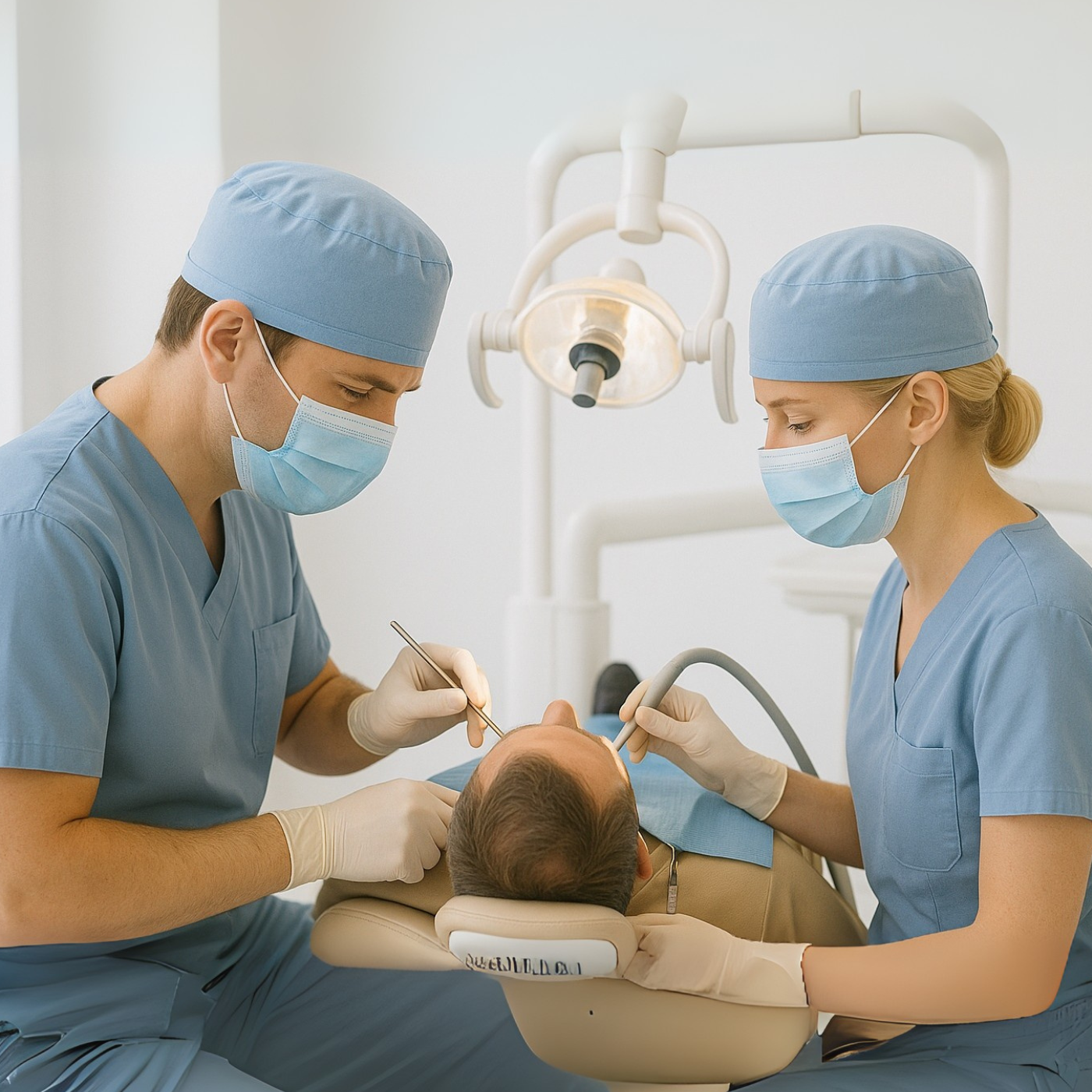 Unsere Fachärztin für Oralchirurgie führt Eingriffe direkt in unserer Praxis durch – präzise, schonend und mit modernsten Methoden. Für besonders komplexe Behandlungen oder bei Angstpatienten bieten wir in Zusammenarbeit mit einem erfahrenen Anästhesie-Team auch Eingriffe in Vollnarkose an. So stellen wir sicher, dass Sie sich jederzeit bestens aufgehoben fühlen.